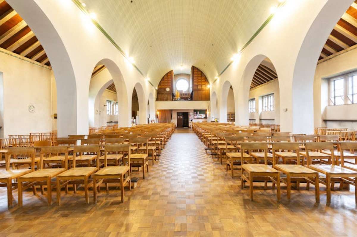 The Church Building Comprises A Single-bay Chancel With East And West Aisles And East Vestry, And East And West Transepts, A North-facing Nave Of Three-bays, A South-facing Sanctuary, And A Bell Tower. The Altar And Organ Are On The First Floor.