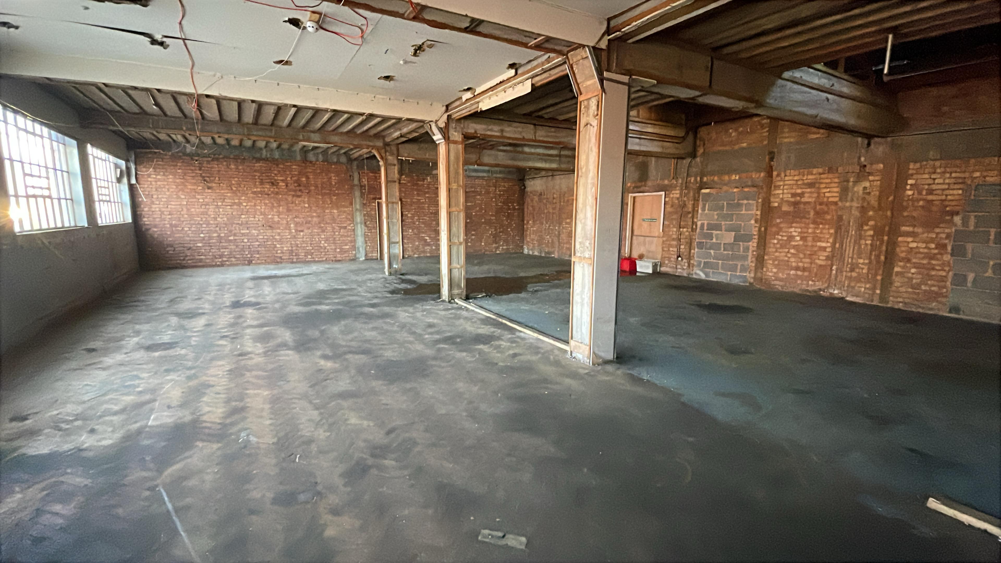 The unit benefits from a tall sloping ceiling with part natural light therefore would work well using shelves to maximize the height and generate more working or storage space.