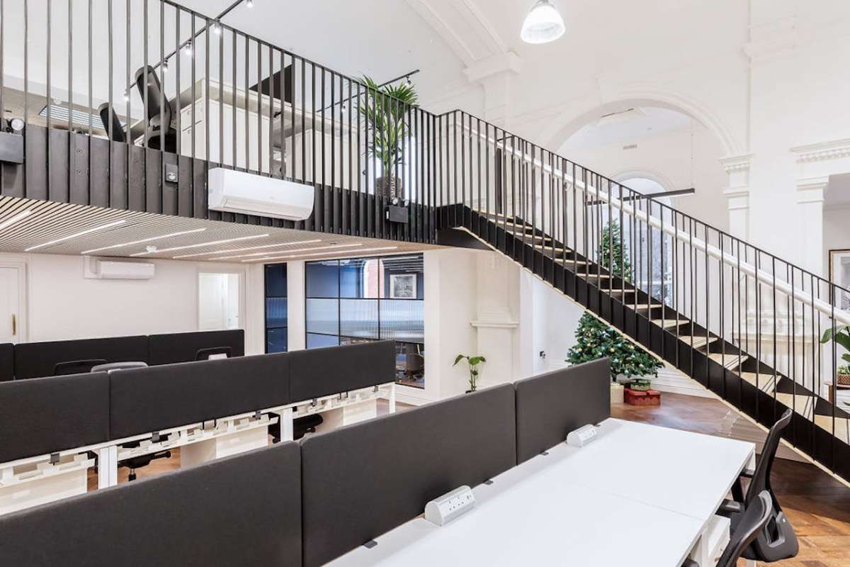 70 workspaces arranged between two halls, plus large lower ground floor
