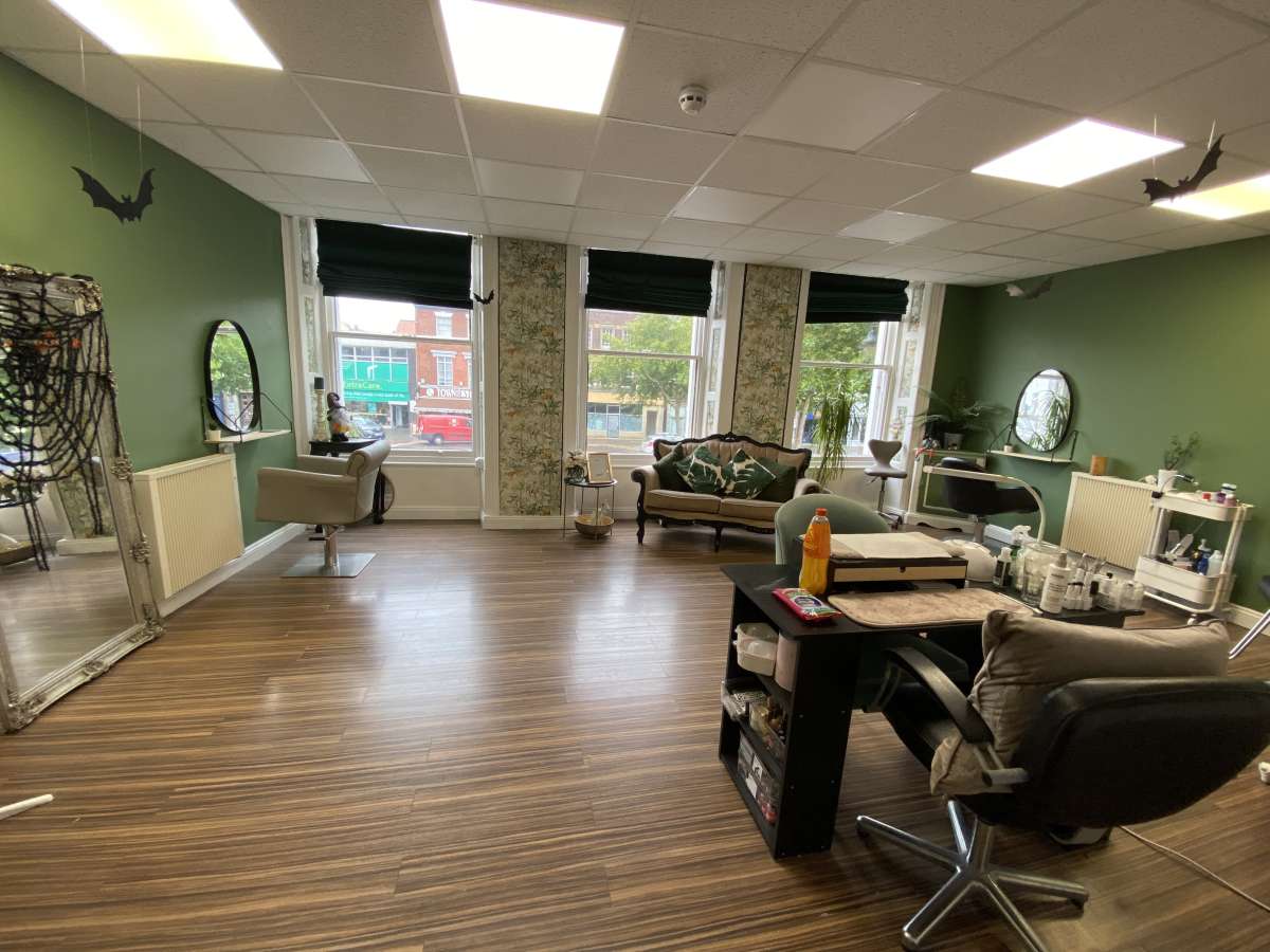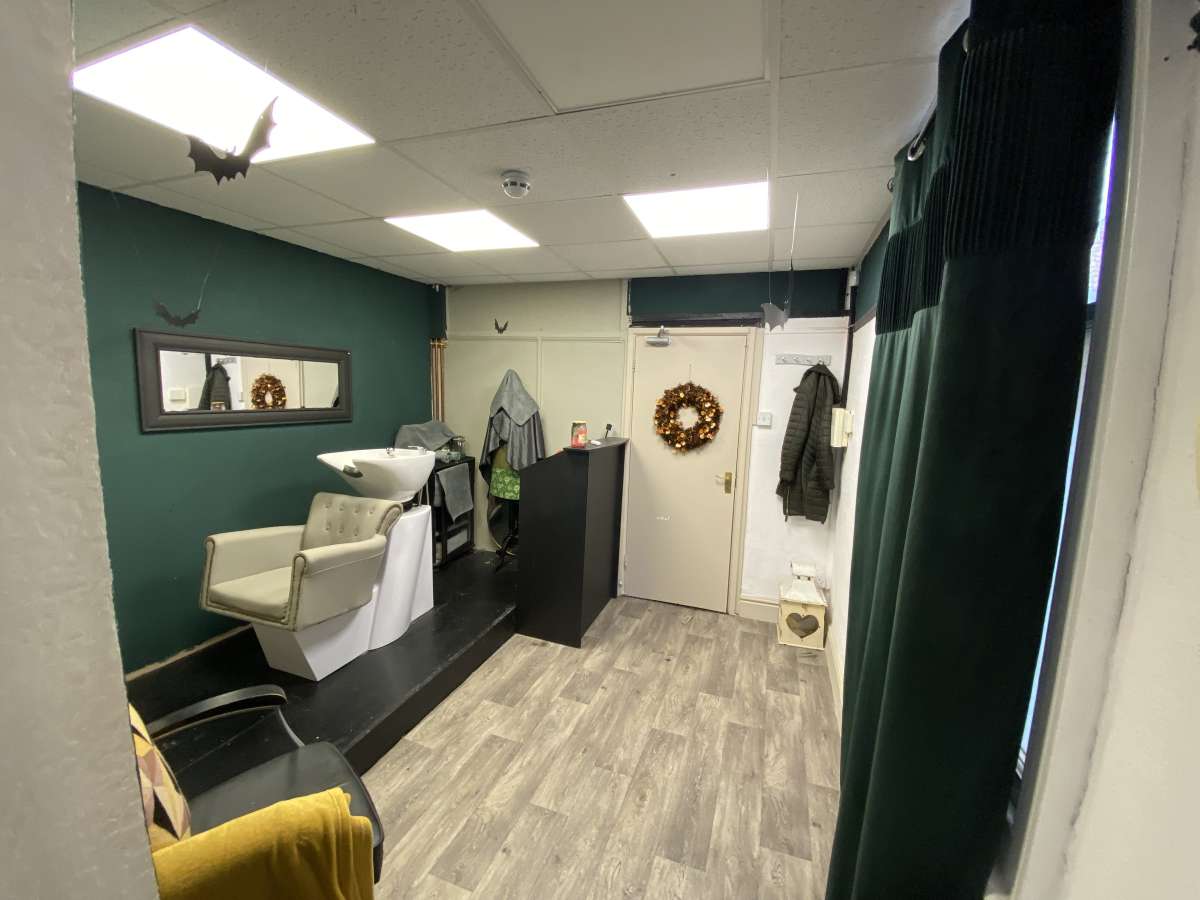 The main shop area at ground floor is currently fitted out by the tenant as a tanning studio. A separate side door leads to the stairs to the first floor treatment salon with further stairs to the top floor 2 bed flat.